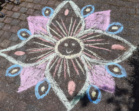 Mijn 'nieuw leven' MANDALA, met stoepkrijt weergegeven