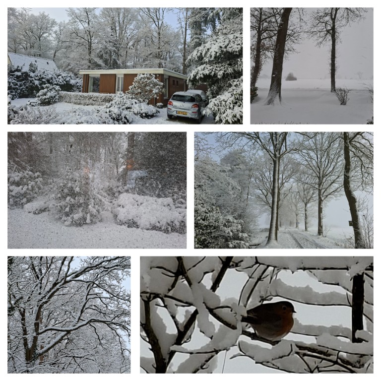 En zowaar: we zijn net terug van een onverwacht verstilde (!) winterse sneeuw-week in Drenthe, waar het overvloedig (!) WIT was.