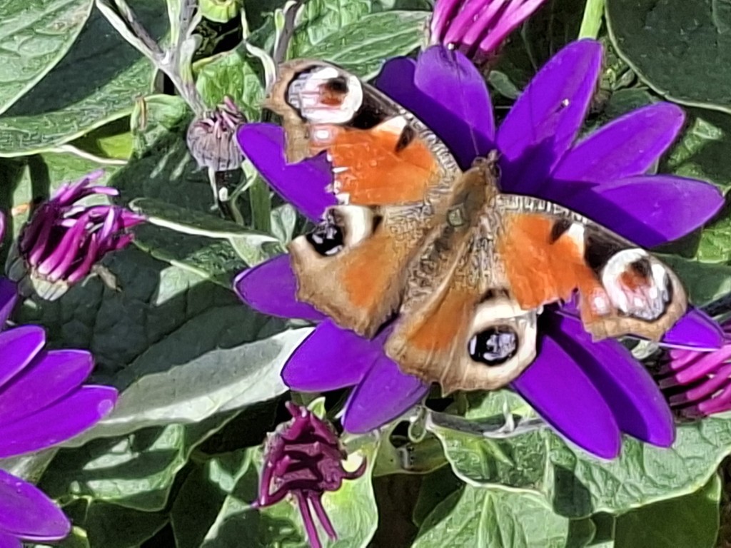 Wat me ook opviel bij een nieuwe plant die ik net had gekocht vanwege de felpaarse kleur, was dat daar meteen allerlei vlinders op afkwamen.